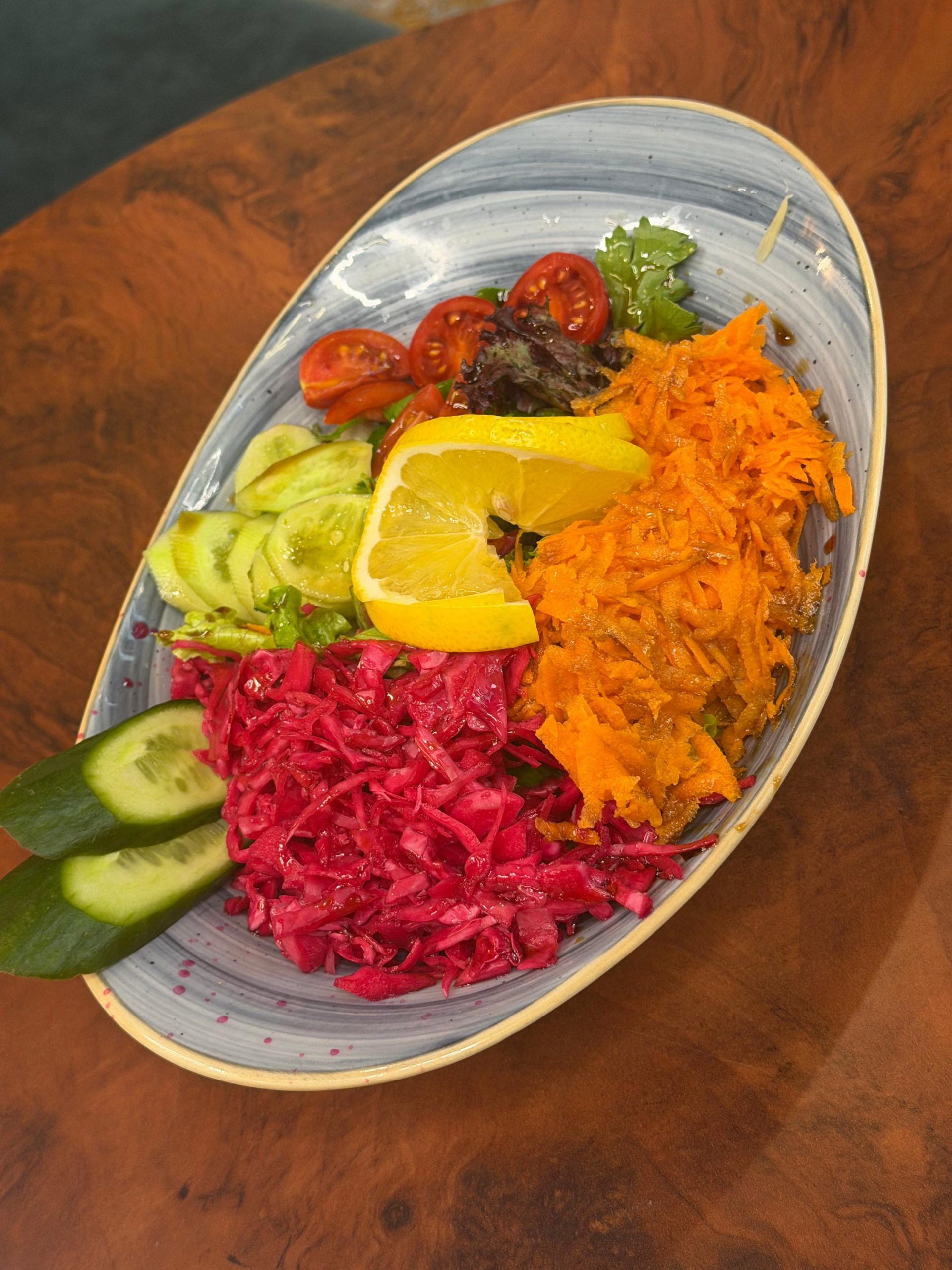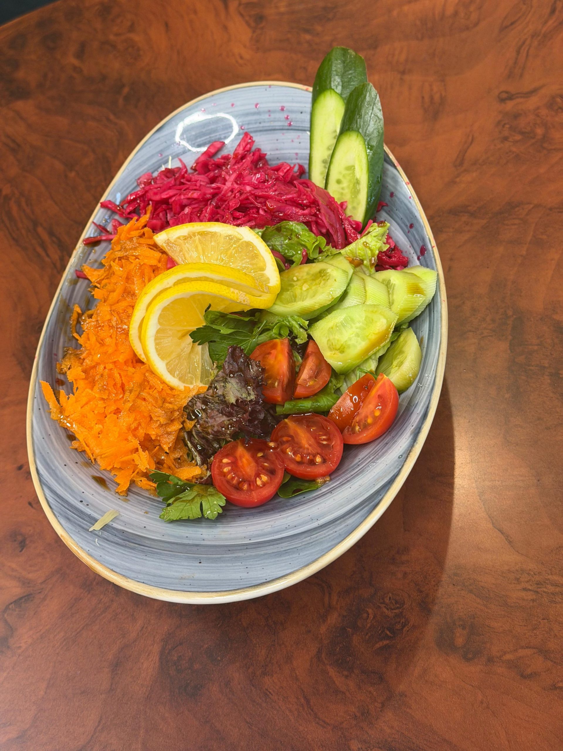 Mevsim Salata, taze yeşilliklerin öne çıktığı hafif ve dengeli bir salatadır. İçeriğinde mevsim sebzeleri bulunur. Günün her saatinde ferah bir alternatif sunar.